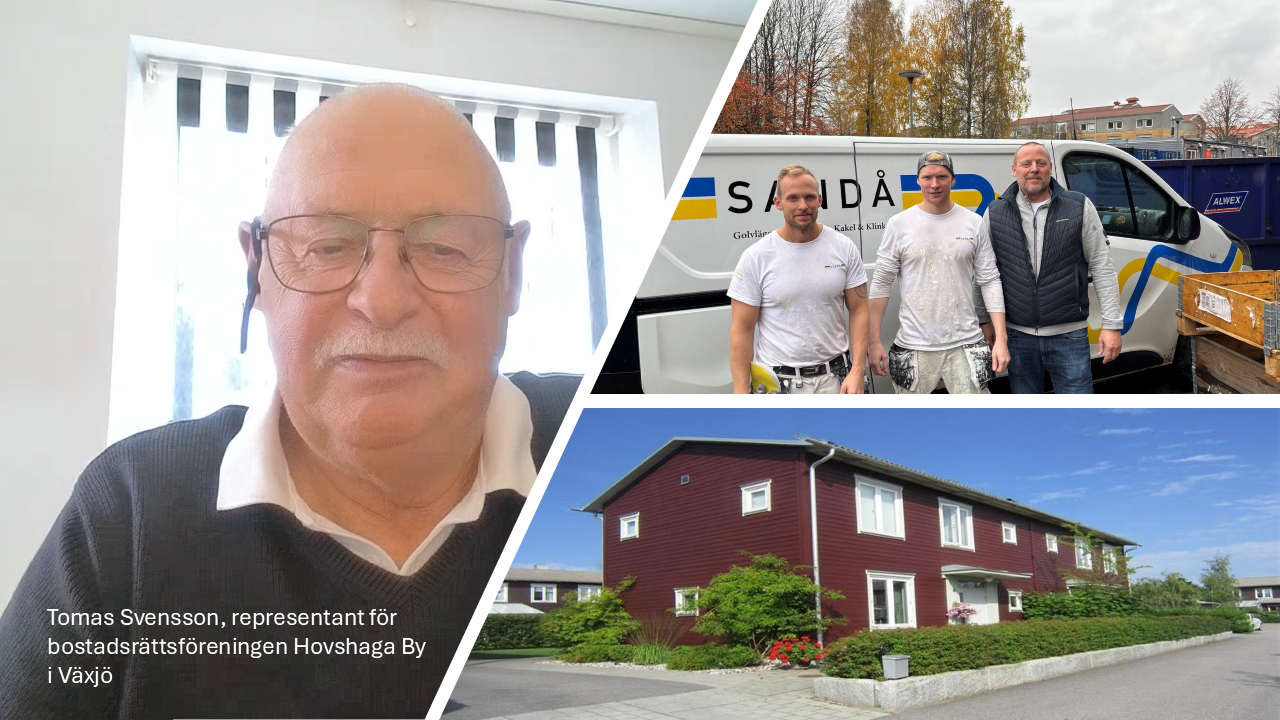 När bostadsrättsföreningen Hovshaga By i Växjö skulle måla om sina 32 lägenheter efter tio år valde de efter ett gediget förarbete Sandå Måleri i Växjö. Från maj till september 2025 utfördes en komplett utvändig målning av fasader, fönster, dörrar, garage och carportar. ”Det som sticker ut i slutbesiktningen är att nog att inget sticker ut,” säger Tomas Svensson, styrelseledamot i föreningen och ansvarig för upphandlingen.